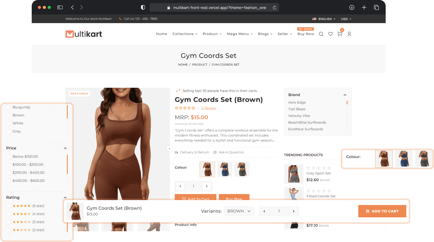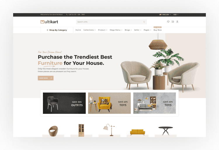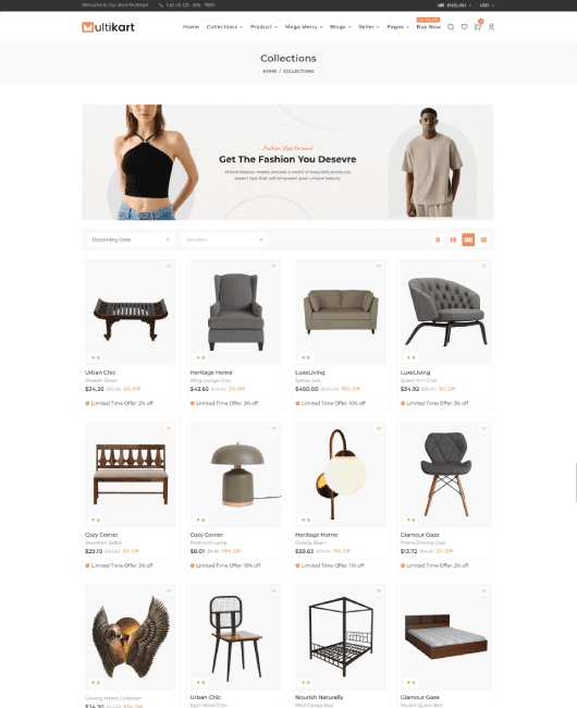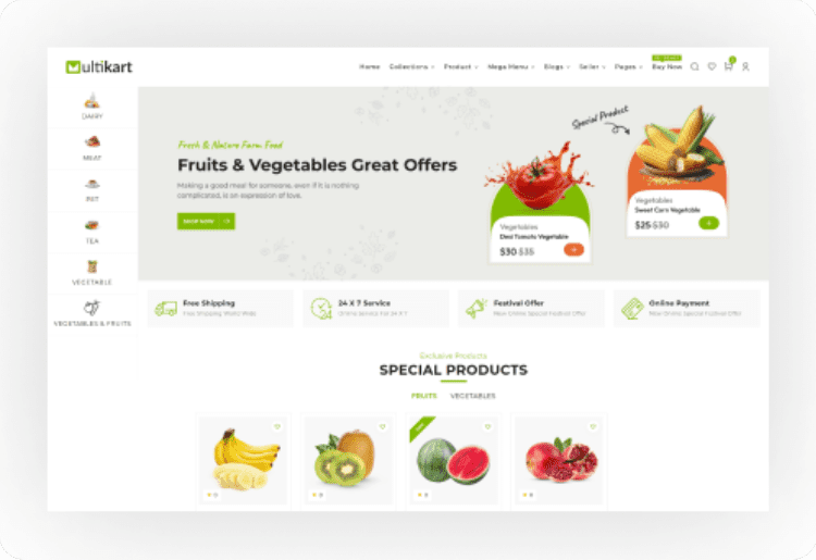 Multikart offers more than 30 features and 6 different product layouts.