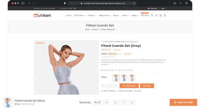 Multikart offers more than six different swatch options, including radio, dropdown, and image swatch.